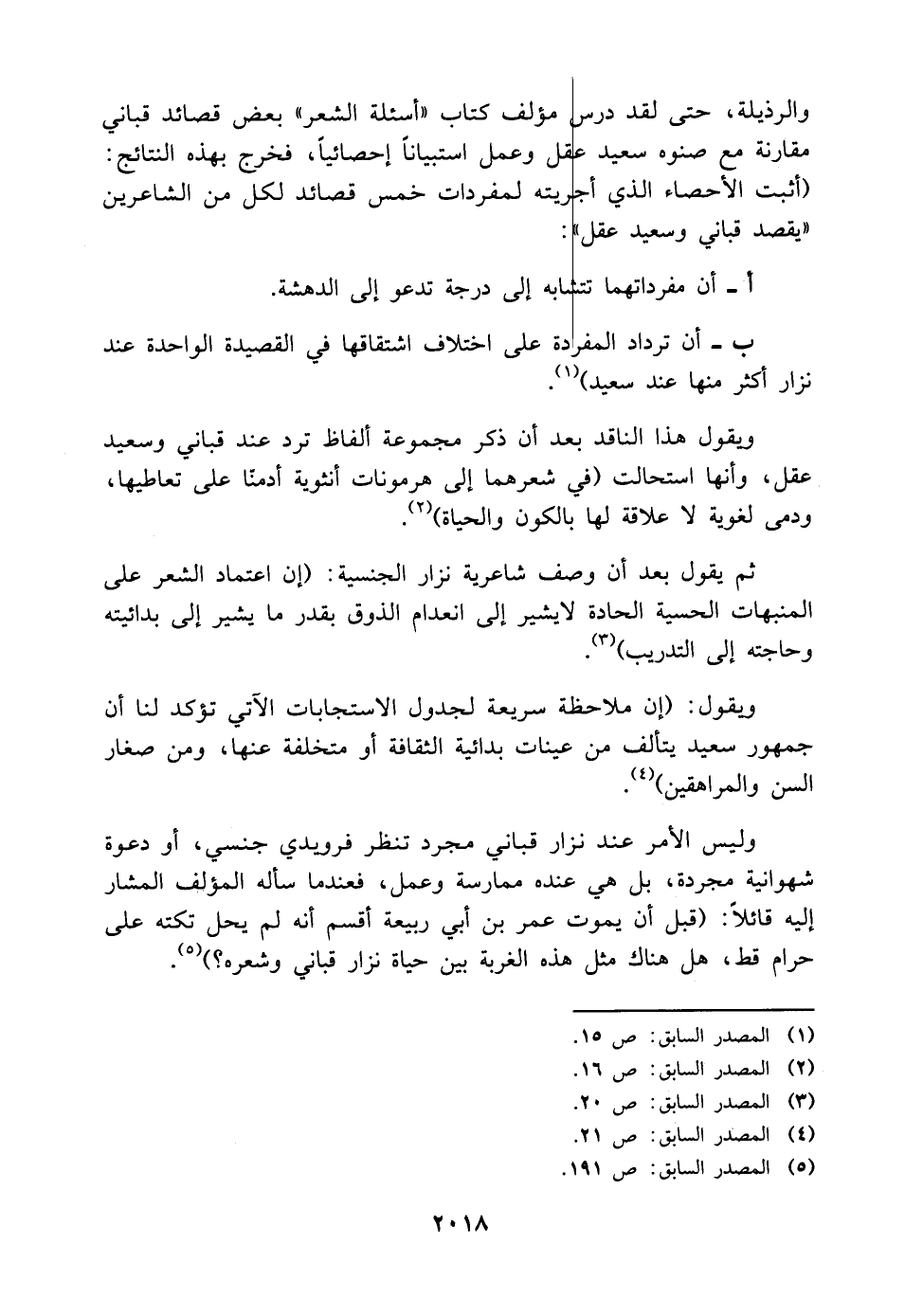 ب- أن ترداد المفردة على اختلاف اشتقاقها في القصيدة الواحدة عند نزار أكثر منها عند سعيد) (¬١).