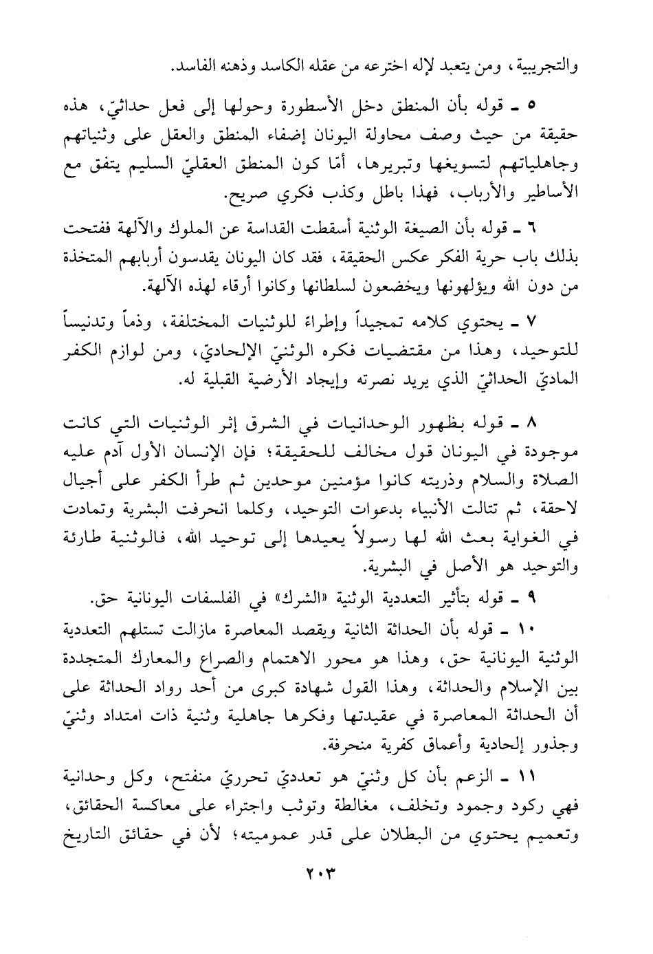 ٩ - قوله بتأثير التعددية الوثنية "الشرك" في الفلسفات اليونانية حق.