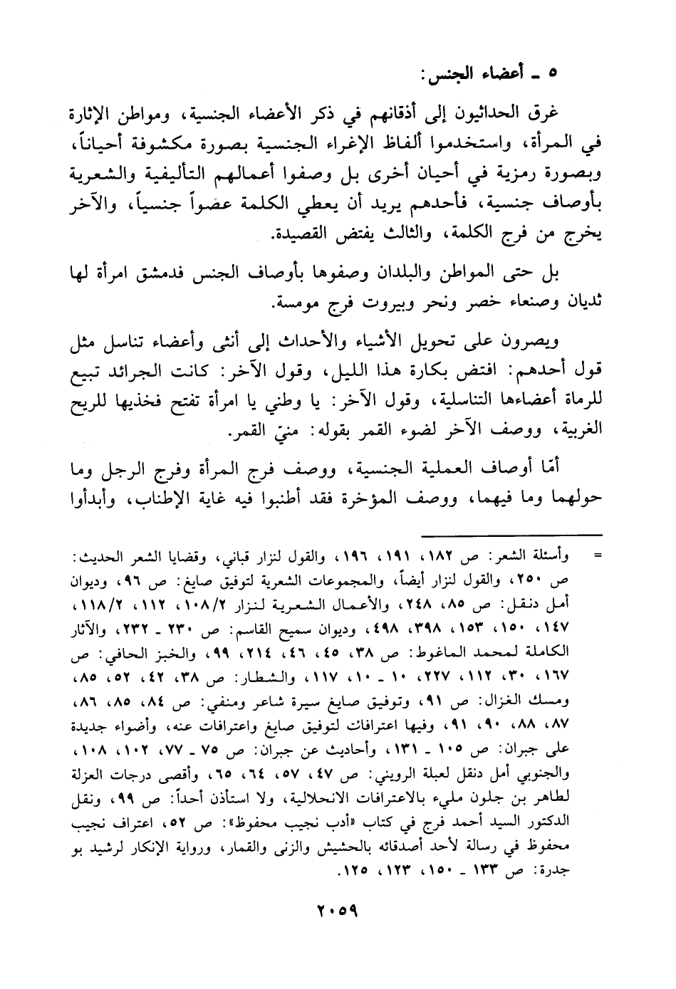 بل حتى المواطن والبلدان وصفوها بأوصاف الجنس فدمشق امرأة لها ثديان وصنعاء خصر ونحر وبيروت فرج مومسة.