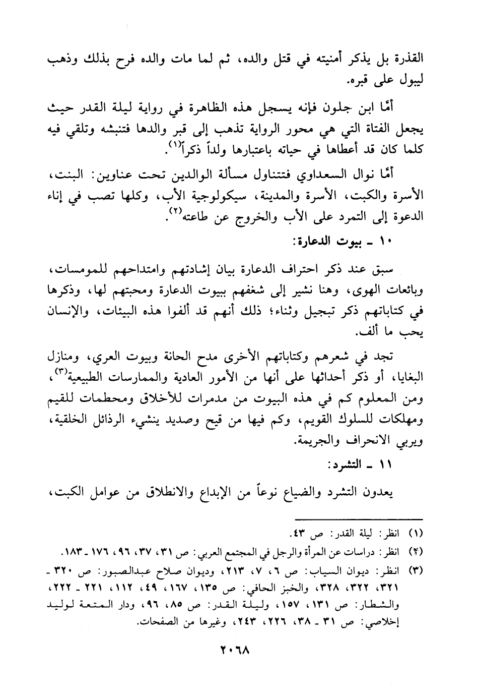 (¬٢) انظر: دراسات عن المرأة والرجل في المجتمع العربي: ص ٣١، ٣٧، ٩٦، ١٧٦ - ١٨٣.