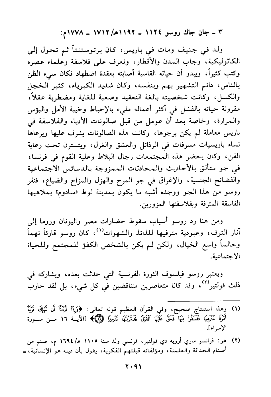 ٣ - جان جاك روسو ١١٢٤ - ١١٩٢ هـ/ ١٧١٢ - ١٧٧٨ م:
