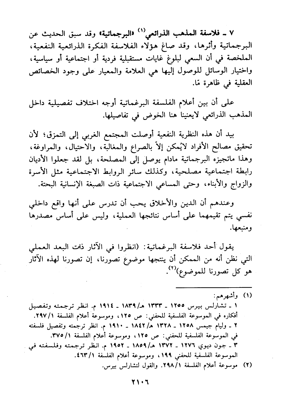 ١ - تشارلس بيرس ١٢٥٥ - ١٣٣٣ هـ/ ١٨٣٩ - ١٩١٤ م. انظر ترجمته وتفصيل أفكاره في الموسوعة الفلسفية للحفني: ص ١٢٥، وموسوعة أعلام الفلسفة ١/ ٢٩٧.