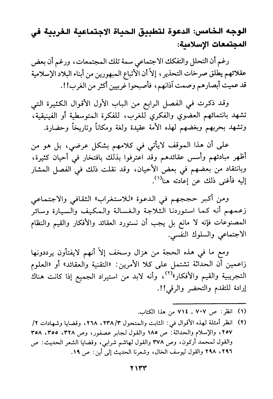 (¬٢) انظر أمثلة لهذه الأقوال في: الثابت والمتحول ٣/ ٢٣٨، ٢٦٨، وقضايا وشهادات ٢/ ٢٥٧، والإسلام والحداثة: ص ١٨٥ والقول لجابر عصفور، وص ٣٢٨، ٣٥٥، ٣٥٨ والقول لمحمد أركون، وص ٣٧٨ والقول لهاشم شرابي، وقضايا الشعر الحديث: ص ٢٩٦، ٢٩٨ والقول ليوسف الخال، وشعرنا الحديث إلى أين: ص ١٩.