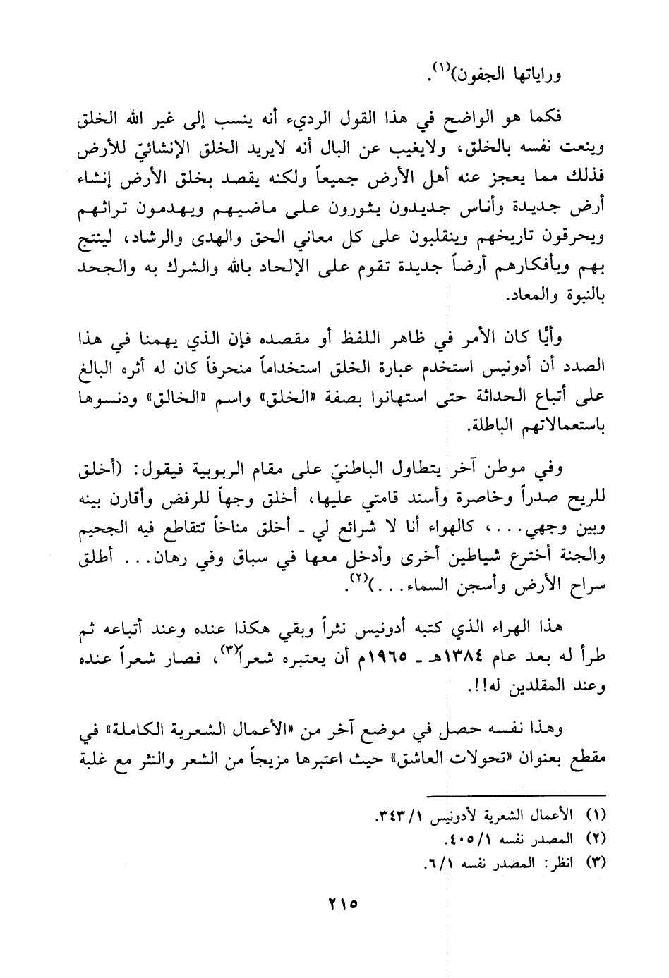هذا الهراء الذي كتبه أدونيس نثرًا وبقي هكذا عنده وعند أتباعه ثم طرأ له بعد عام ١٣٨٤ هـ - ١٩٦٥ م أن يعتبره شعرًا (¬٣)، فصار شعرًا عنده وعند المقلدين له! ! .