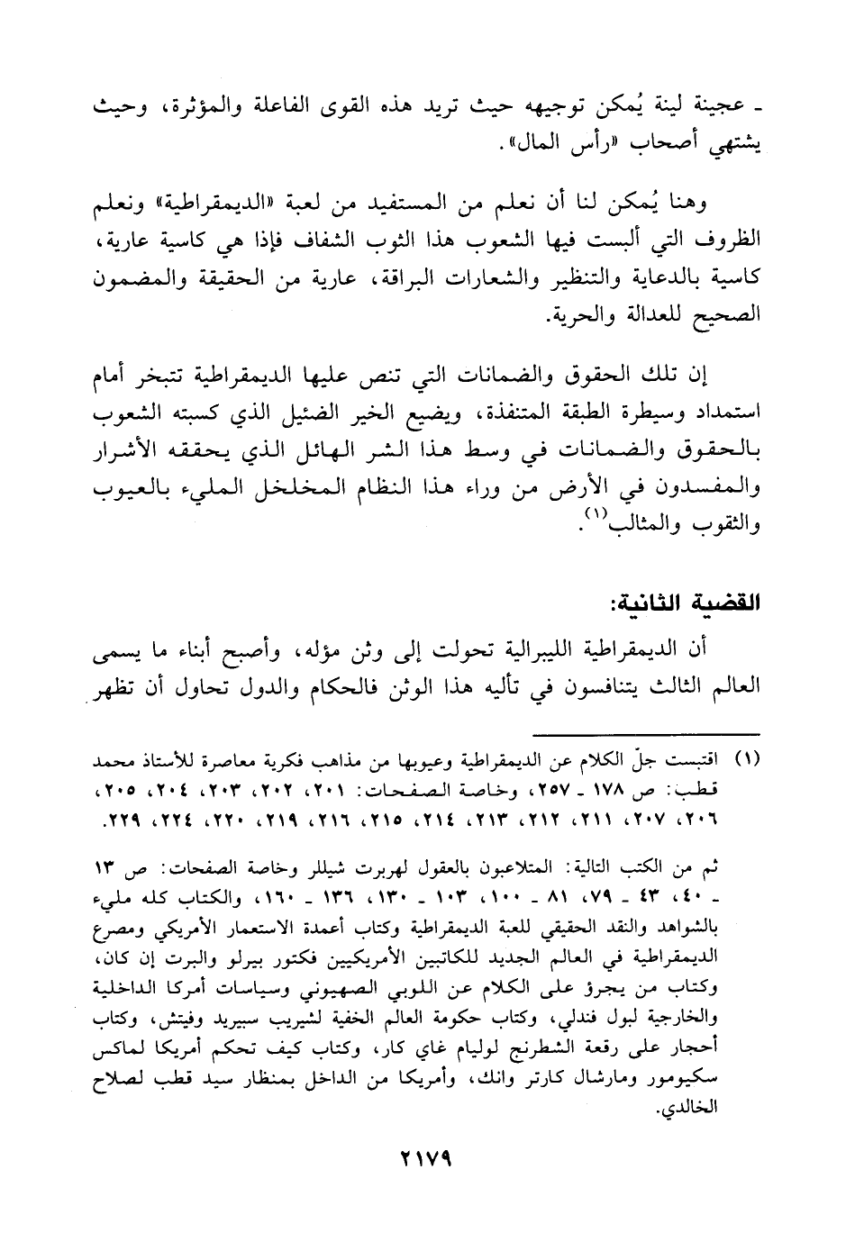(¬١) اقتبست جلّ الكلام عن الديمقراطية وعيوبها من مذاهب فكرية معاصرة للأستاذ محمد قطب: ص ١٧٨ - ٢٥٧، وخاصة الصفحات: ٢٠١، ٢٠٢، ٢٠٣، ٢٠٤، ٢٠٥، ٢٠٦، ٢٠٧، ٢١١، ٢١٢، ٢١٣، ٢١٤، ٢١٥، ٢١٦، ٢١٩، ٢٢٠، ٢٢٤، ٢٢٩.