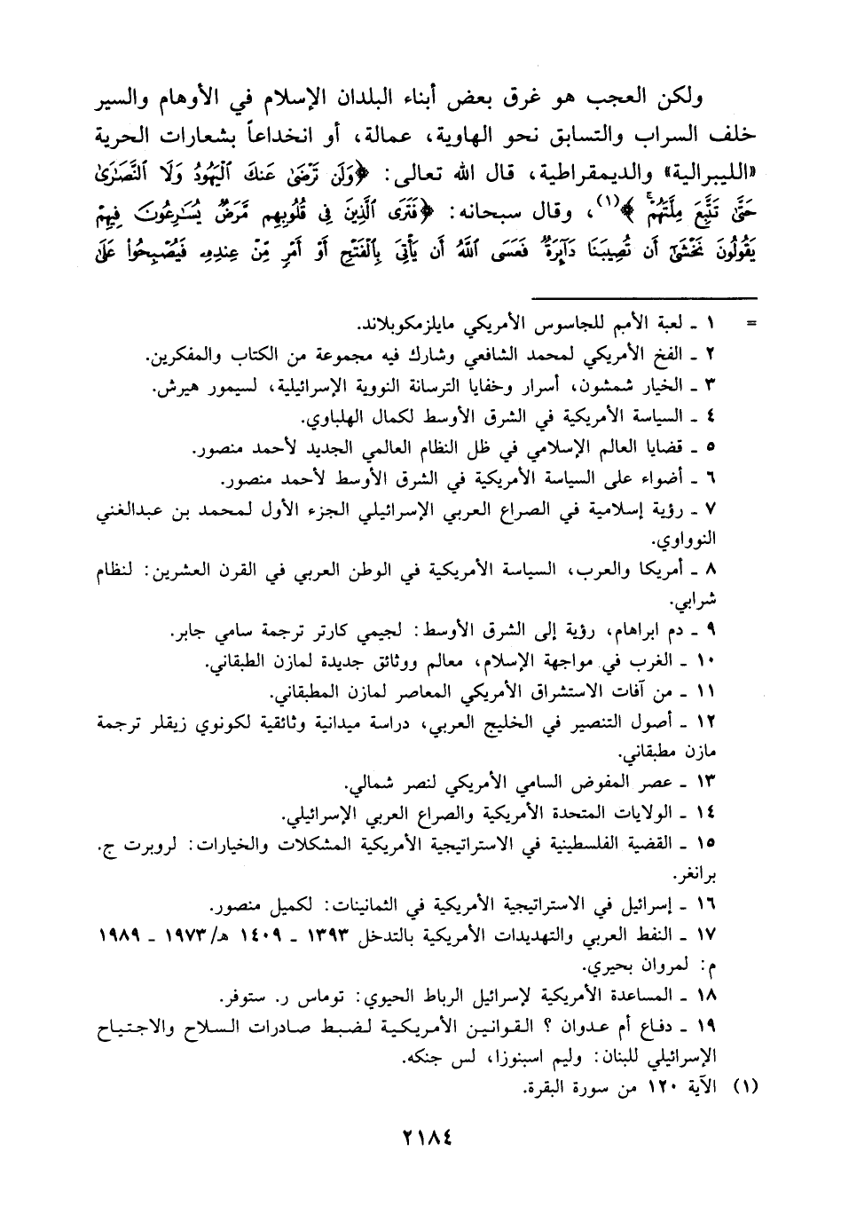 ٨ - أمريكا والعرب، السياسة الأمريكية في الوطن العربي في القرن العشرين: لنظام شرابي.