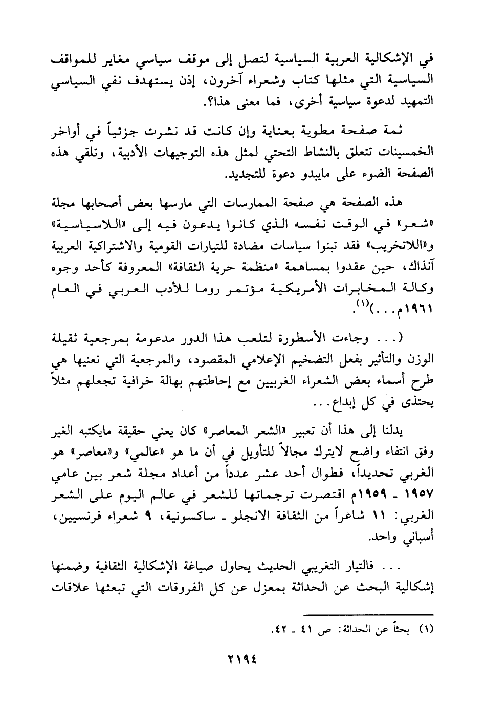 (¬١) بحثًا عن الحداثة: ص ٤١ - ٤٢.