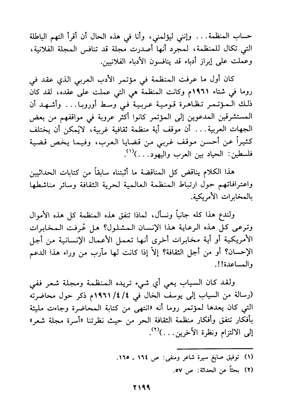هذا الكلام يناقض كل المناقضة ما أثبتناه سابقًا من كتابات الحداثيين واعترافاتهم حول ارتباط المنظمة العالمية لحرية الثقافة وسائر مناشطها بالمخابرات الأمريكية.