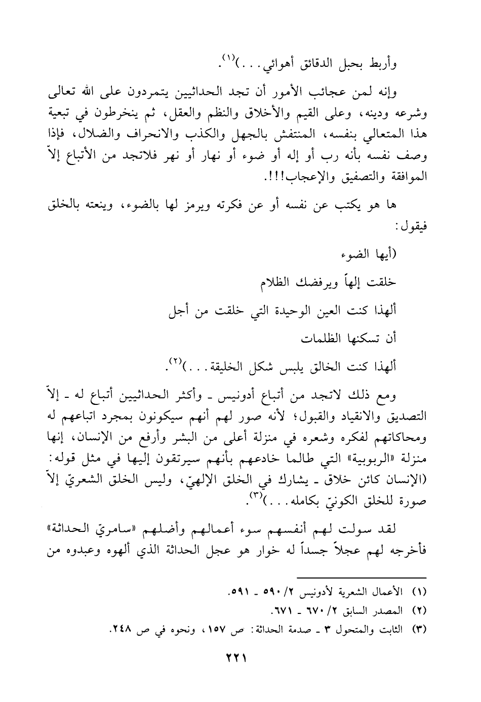 (¬٣) الثابت والمتحول ٣ - صدمة الحداثة: ص ١٥٧، ونحوه في ص ٢٤٨.