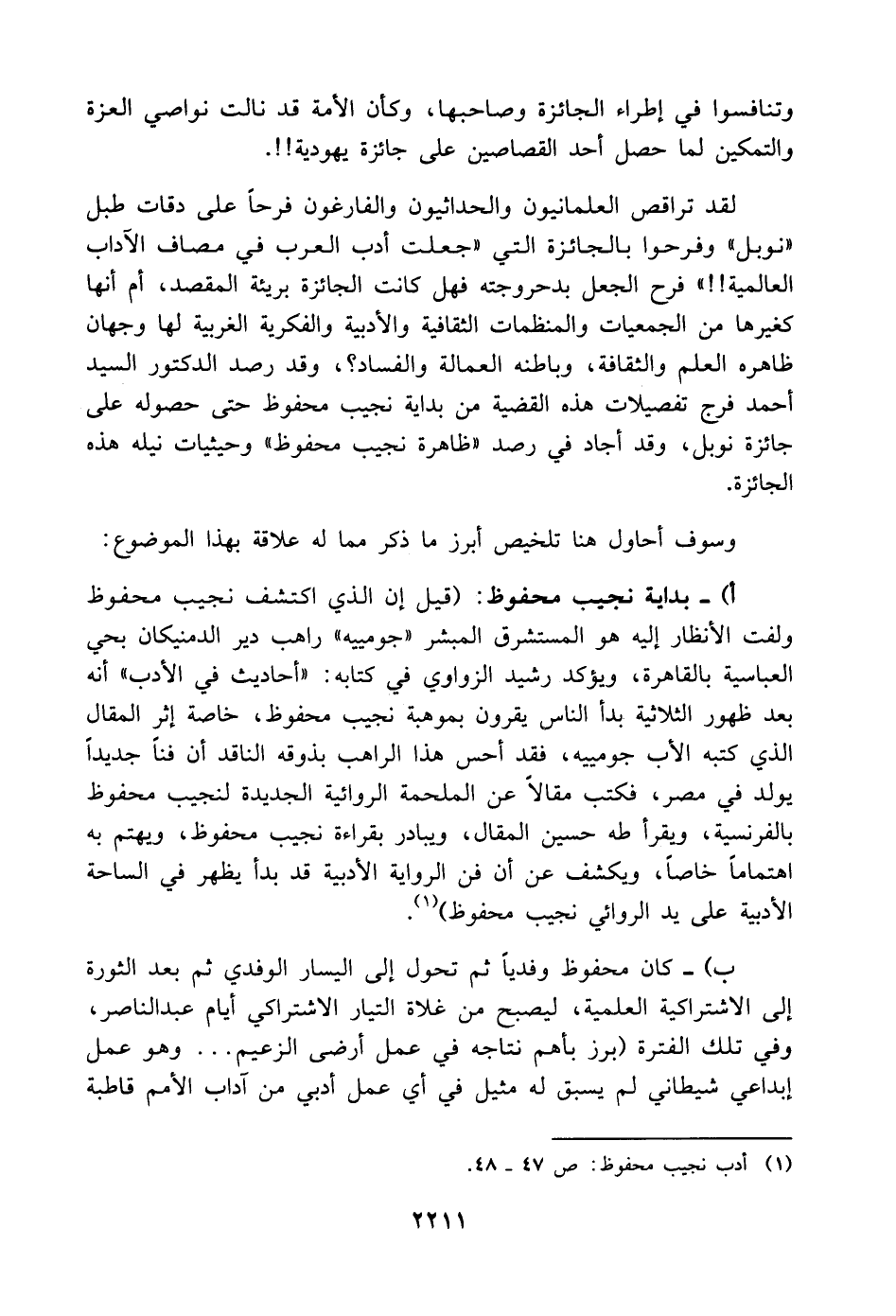 (¬١) أدب نجيب محفوظ: ص ٤٧ - ٤٨.