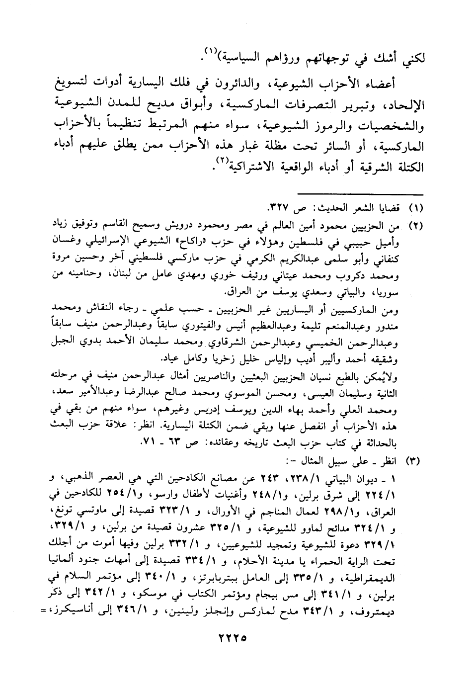 (¬٢) من الحزبيين محمود أمين العالم في مصر ومحمود درويش وسميح القاسم وتوفيق زياد وأميل حبيبي في فلسطين وهؤلاء في حزب "راكاح" الشيوعي الإسرائيلي وغسان كنفاني وأبو سلمى عبد الكريم الكرمي في حزب ماركسي فلسطيني آخر وحسين مروة ومحمد دكروب ومحمد عيتاني ورئيف خوري ومهدي عامل من لبنان، وحنامينه من سوريا، والبياتي وسعدي يوسف من العراق.