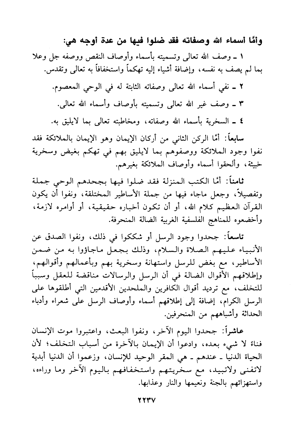 ثامنًا: أمَّا الكتب المنزلة فقد ضلوا فيها بجحدهم الوحي جملة وتفصيلًا، وجعل ما جاء فيها من جملة الأساطير المختلقة، ونفوا أن يكون القرآن العظيم كلام اللَّه، أو أن تكون أخباره حقيقية، أو أوامره لازمة، وأخضعوه للمناهج الفلسفية الغربية الضالة المنحرفة.