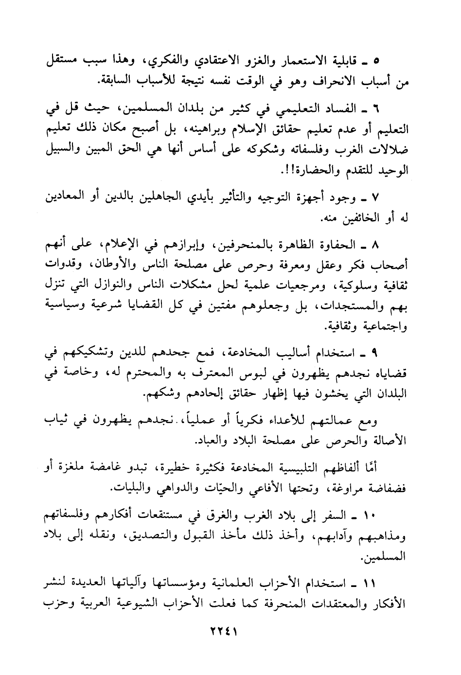 ٥ - قابلية الاستعمار والغزو الاعتقادي والفكري، وهذا سبب مستقل من أسباب الانحراف وهو في الوقت نفسه نتيجة للأسباب السابقة.