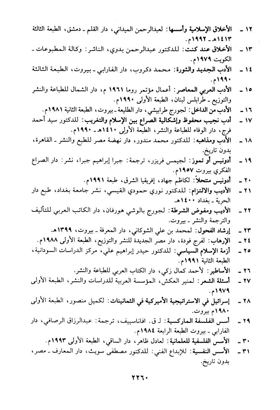 ١٢ - الأخلاق الإسلامية وأسسها: لعبد الرحمن الميداني، دار القلم - دمشق، الطبعة الثالثة ١٤١٣ هـ - ١٩٩٢ م.