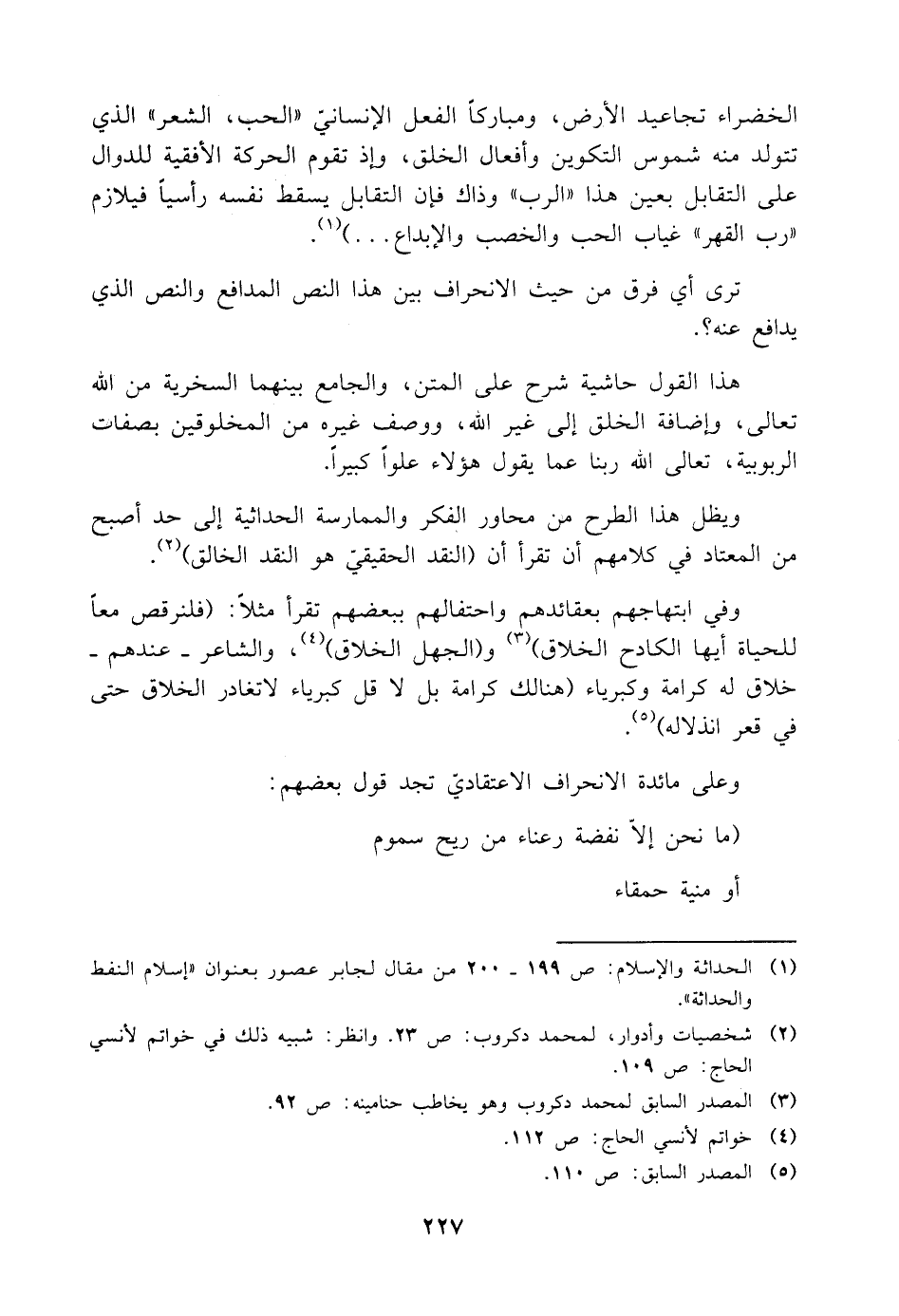 (¬١) الحداثة والإسلام: ص ١٩٩ - ٢٠٠ من مقال لجابر عصور بعنوان "إسلام النفط والحداثة".