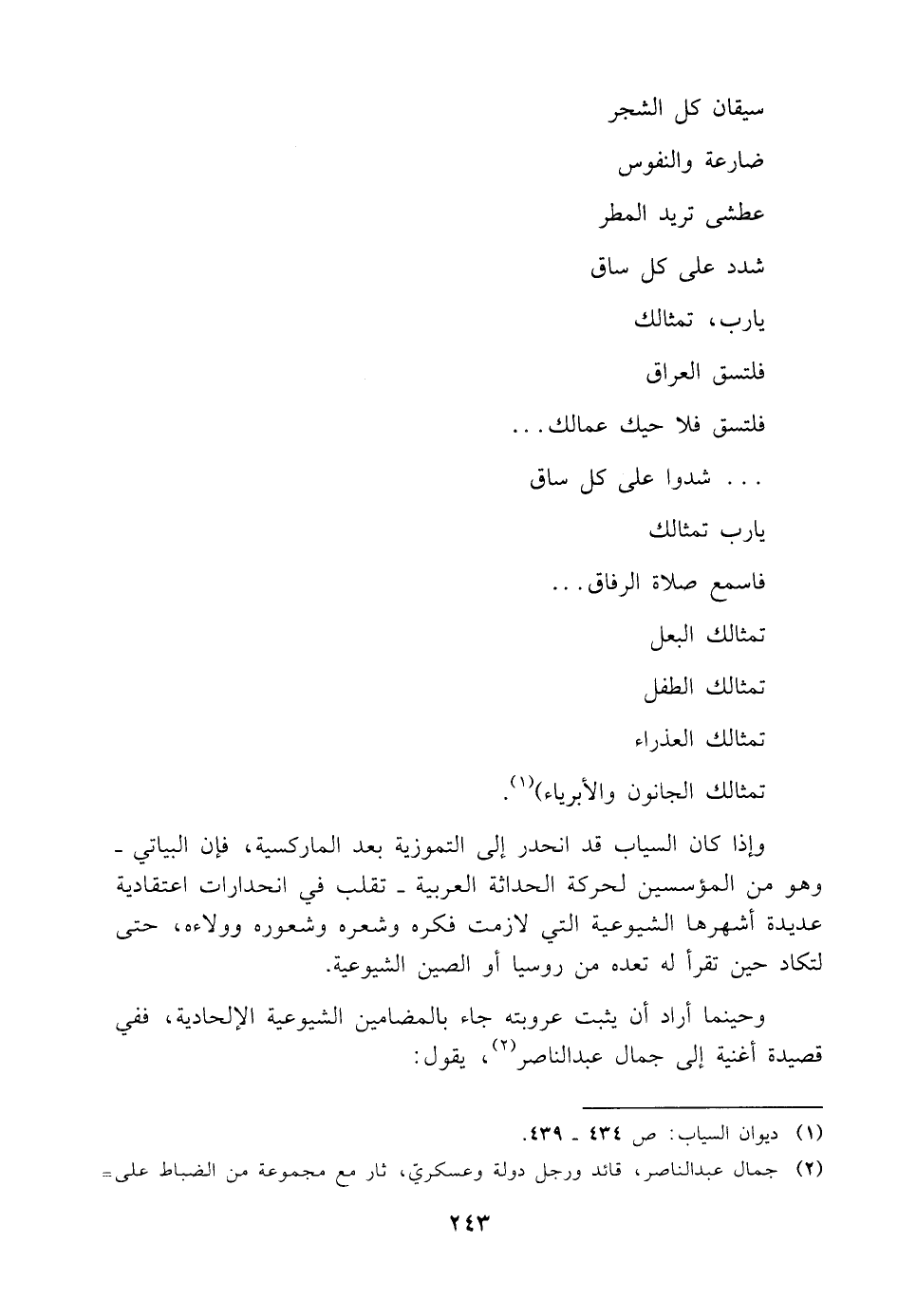 (¬١) ديوان السياب: ص ٤٣٤ - ٤٣٩.