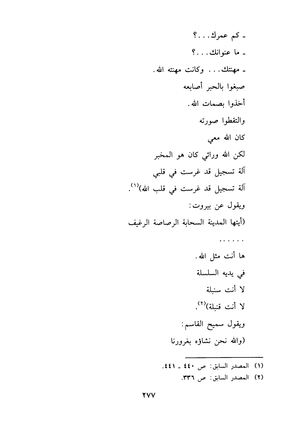 ويقول سميح القاسم: