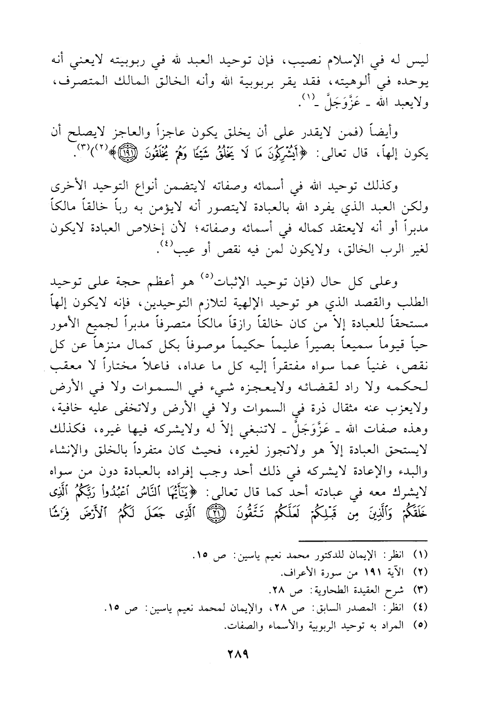 (¬٤) انظر: المصدر السابق: ص ٢٨، والإيمان لمحمد نعيم ياسين: ص ١٥.