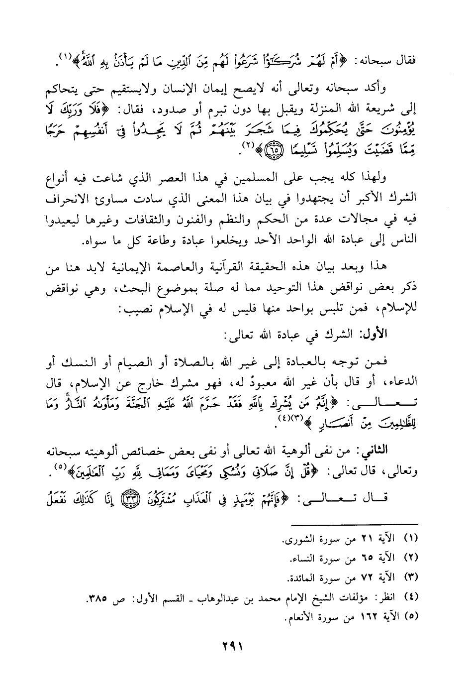 (¬٤) انظر: مؤلفات الشيخ الإمام محمد بن عبد الوهاب - القسم الأول: ص ٣٨٥.