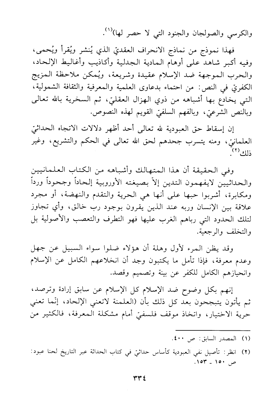 (¬٢) انظر: تأصيل نفي العبودية كأساس حداثيّ في كتاب الحداثة عبر التاريخ لحنا عبود: ص ١٥٠ - ١٥٣.