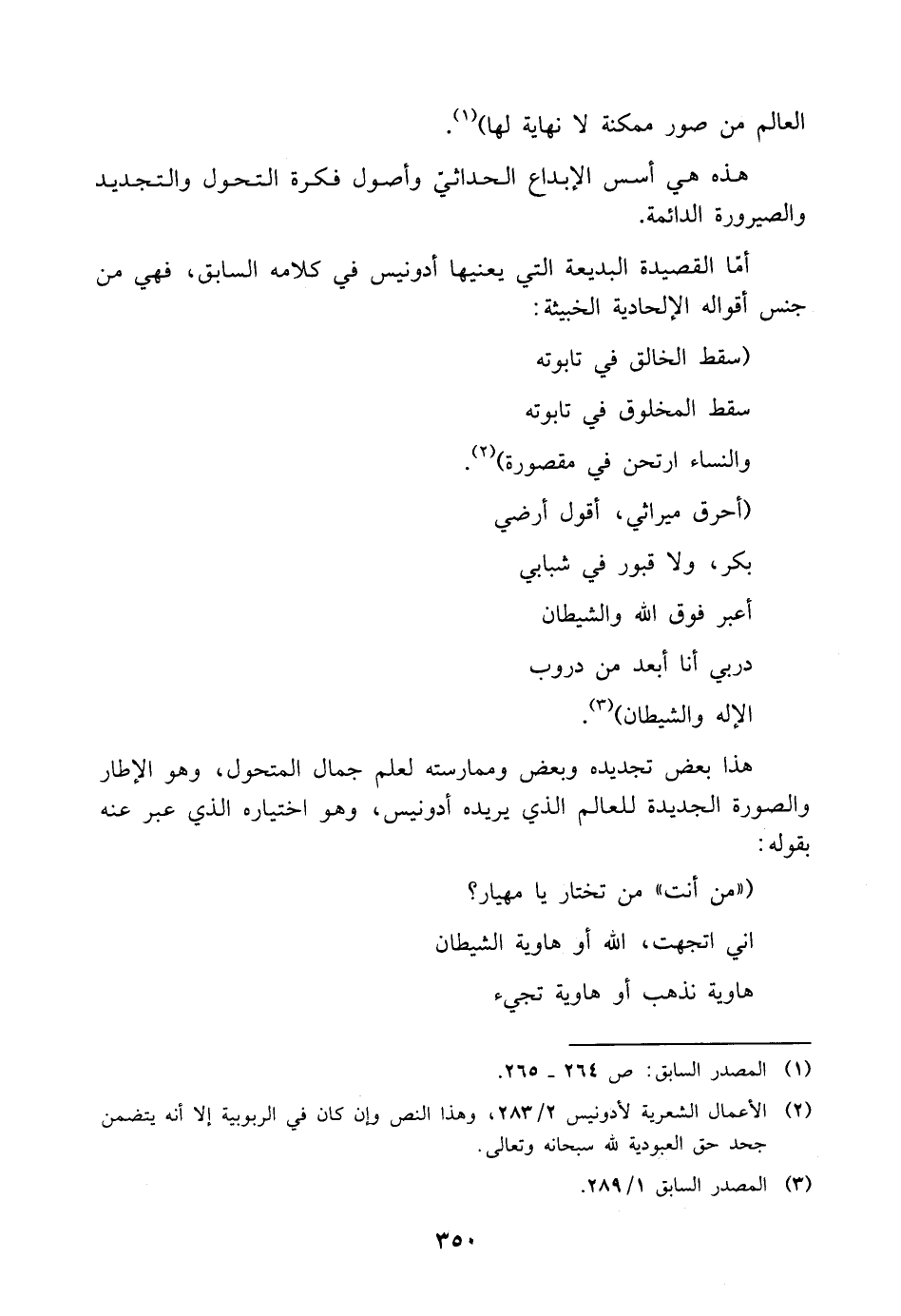 (¬٢) الأعمال الشعرية لأدونيس ٢/ ٢٨٣، وهذا النص وإن كان في الربوبية إلا أنه يتضمن جحد حق العبودية للَّه سبحانه وتعالى.