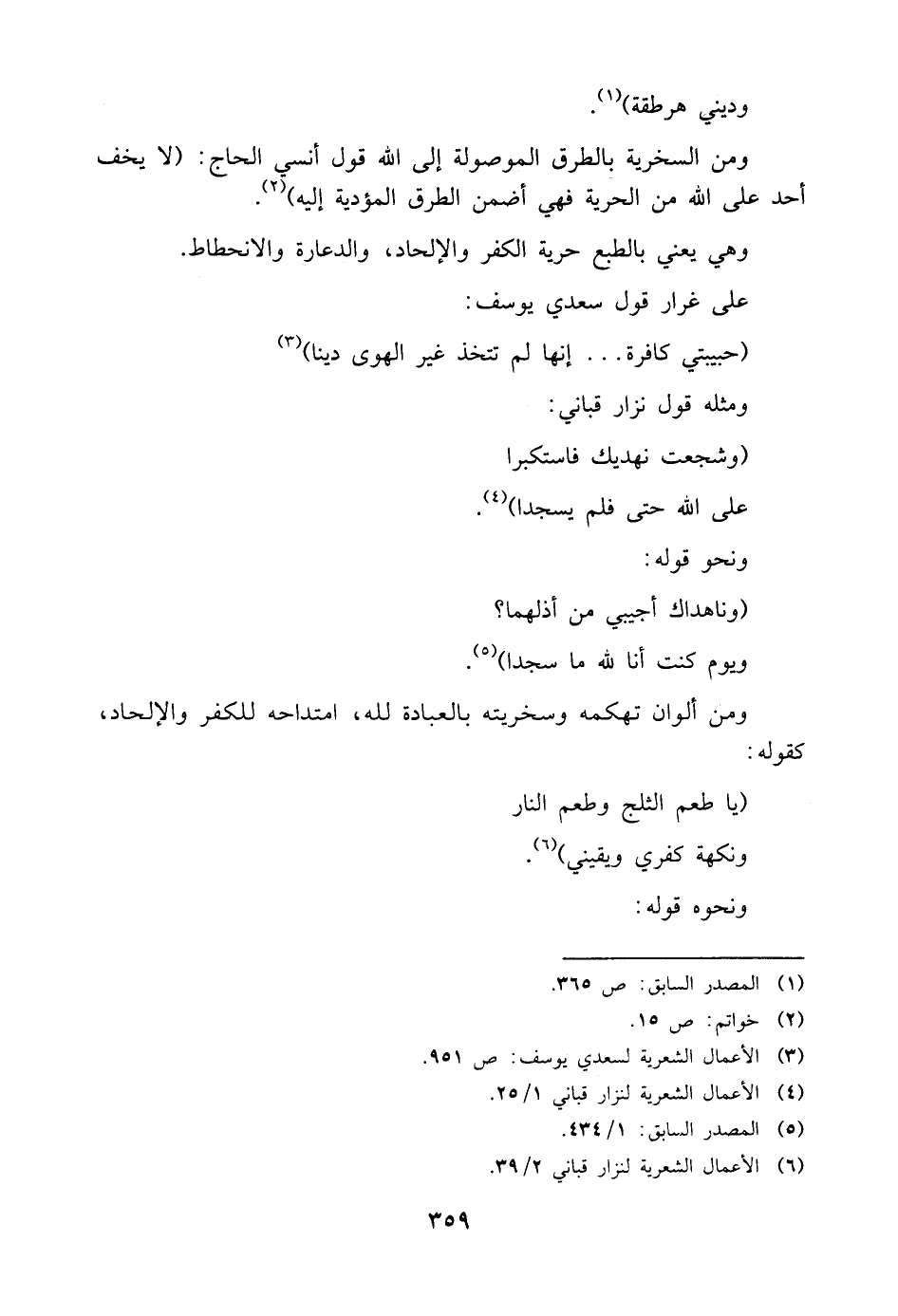 ومن السخرية بالطرق الموصولة إلى اللَّه قول أنسي الحاج: (لا يخف أحد على اللَّه من الحرية فهي أضمن الطرق المؤدية إليه) (¬٢).