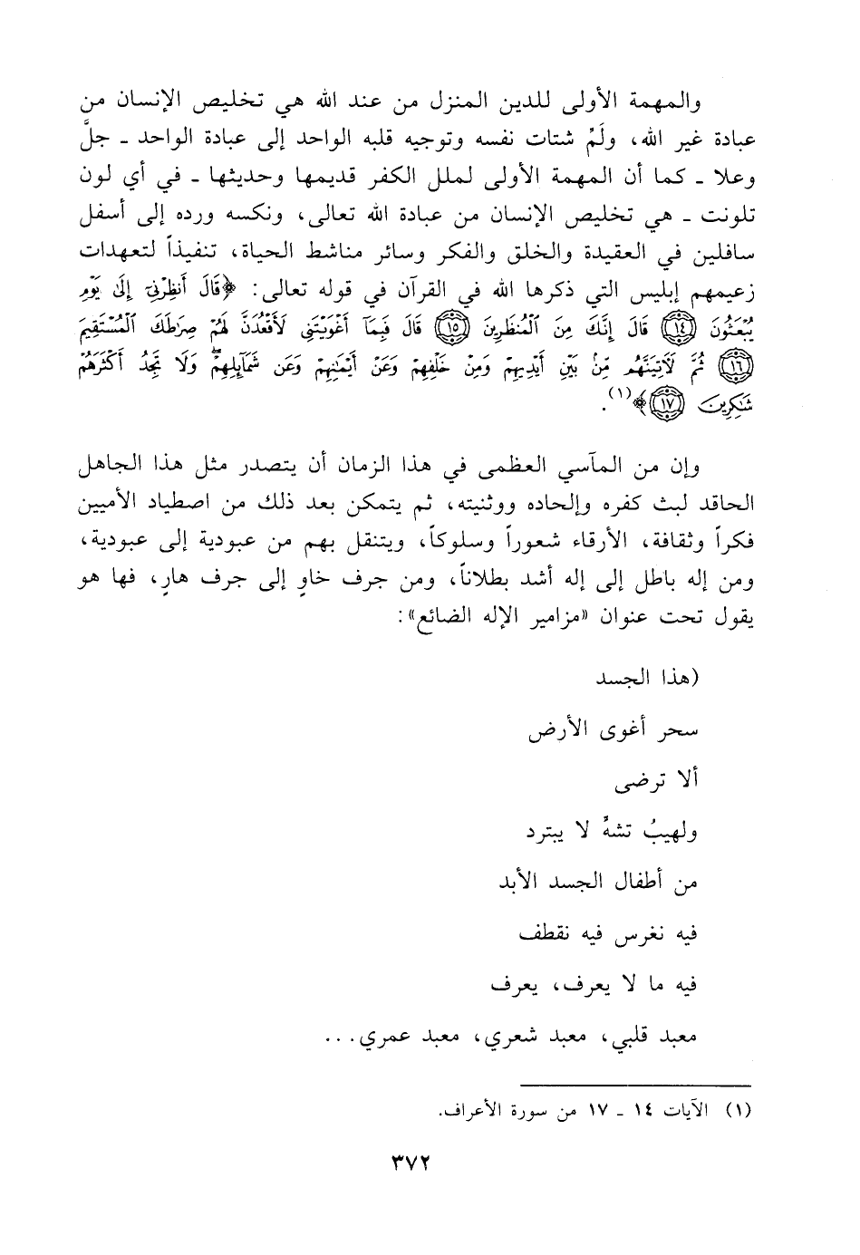 (¬١) الآيات ١٤ - ١٧ من سورة الأعراف.