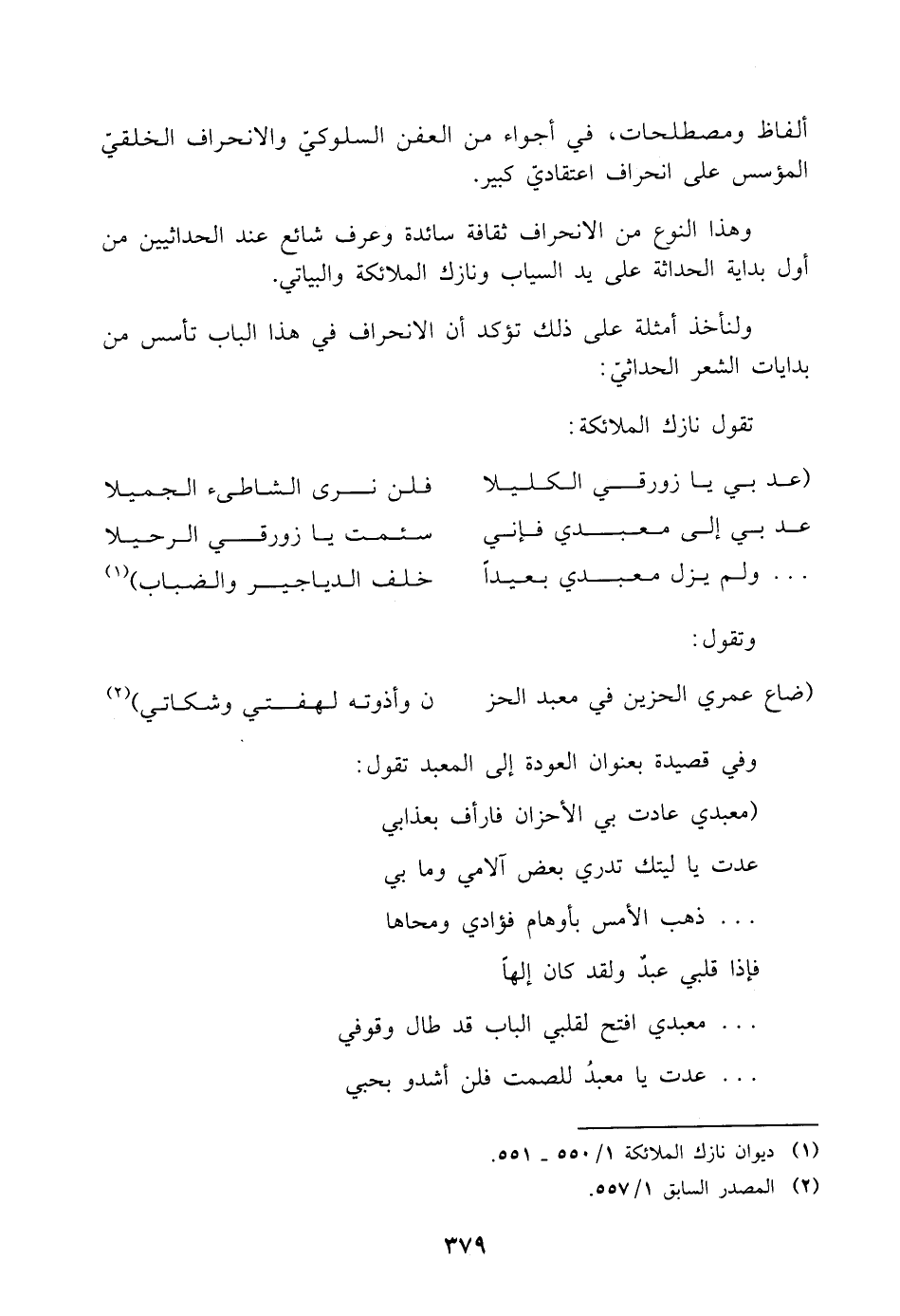 (¬١) ديوان نازك الملائكة ١/ ٥٥٠ - ٥٥١.