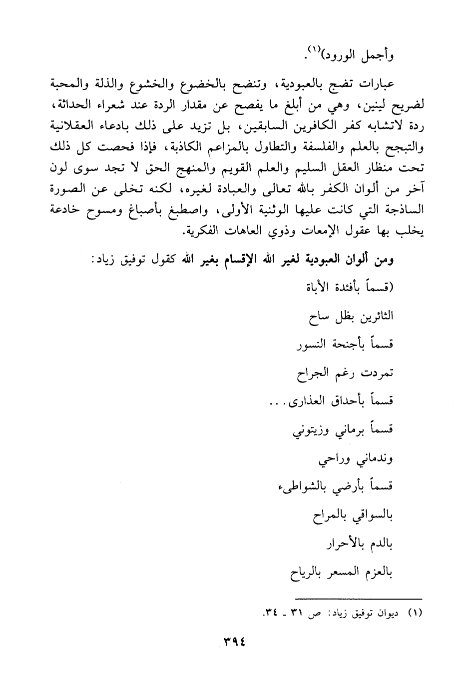 ومن ألوان العبودية لغير اللَّه الإقسام بغير اللَّه كقول توفيق زياد: