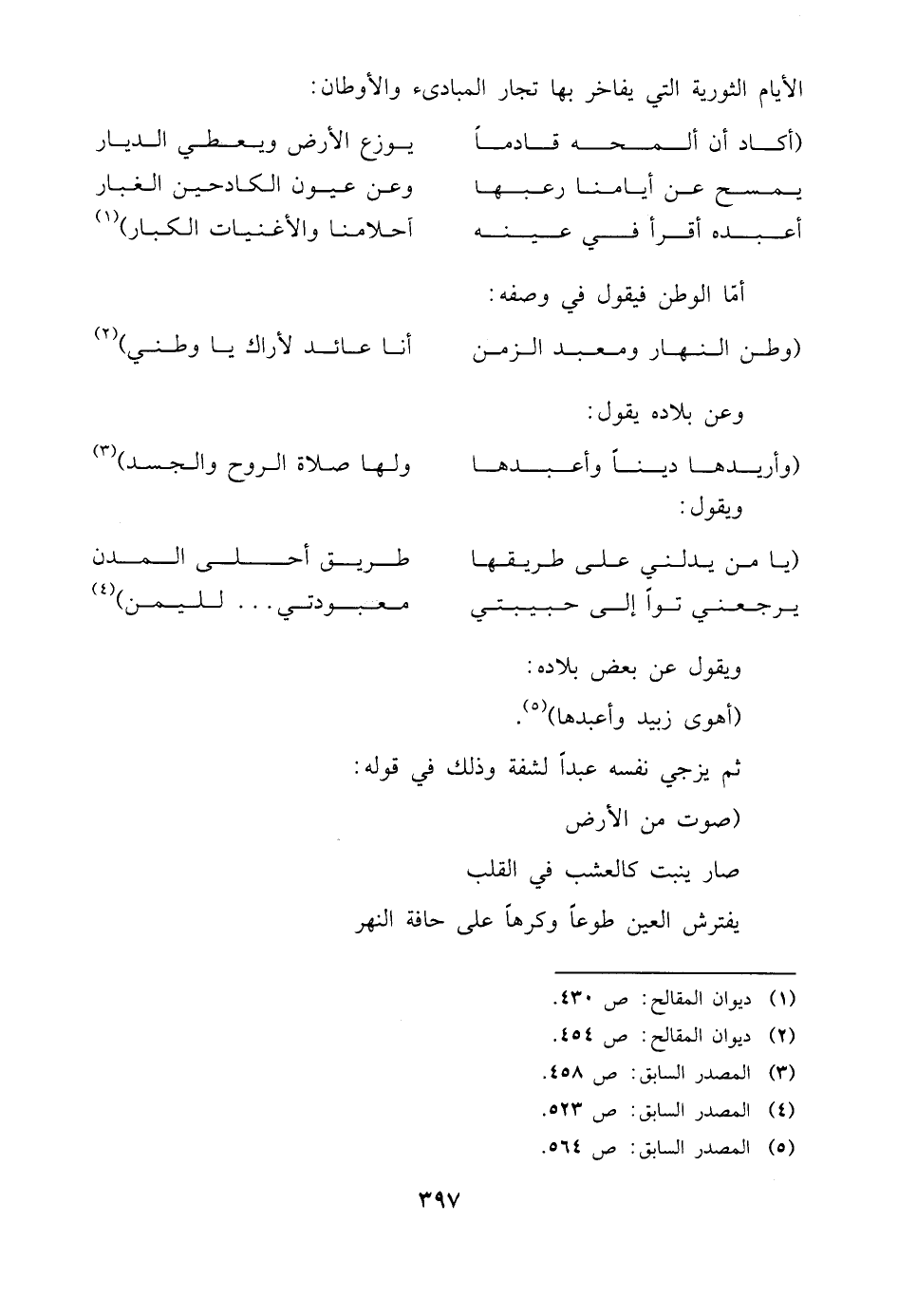 (وطن النهار ومعبد الزمن ... أنا عائد لأراك يا وطني) (¬٢)