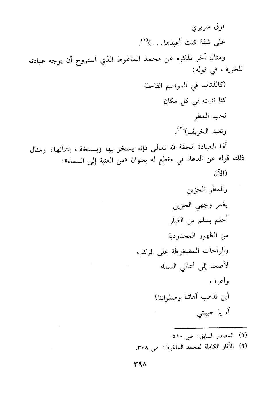 ومثال آخر نذكره عن محمد الماغوط الذي استروح أن يوجه عبادته للخريف في قوله: