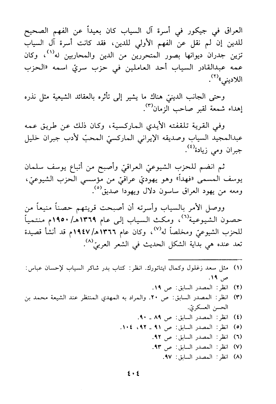 (¬١) مثل سعد زغلول وكمال ايتاتورك. انظر: كتاب بدر شاكر السياب لإحسان عباس: ص ١٩.
