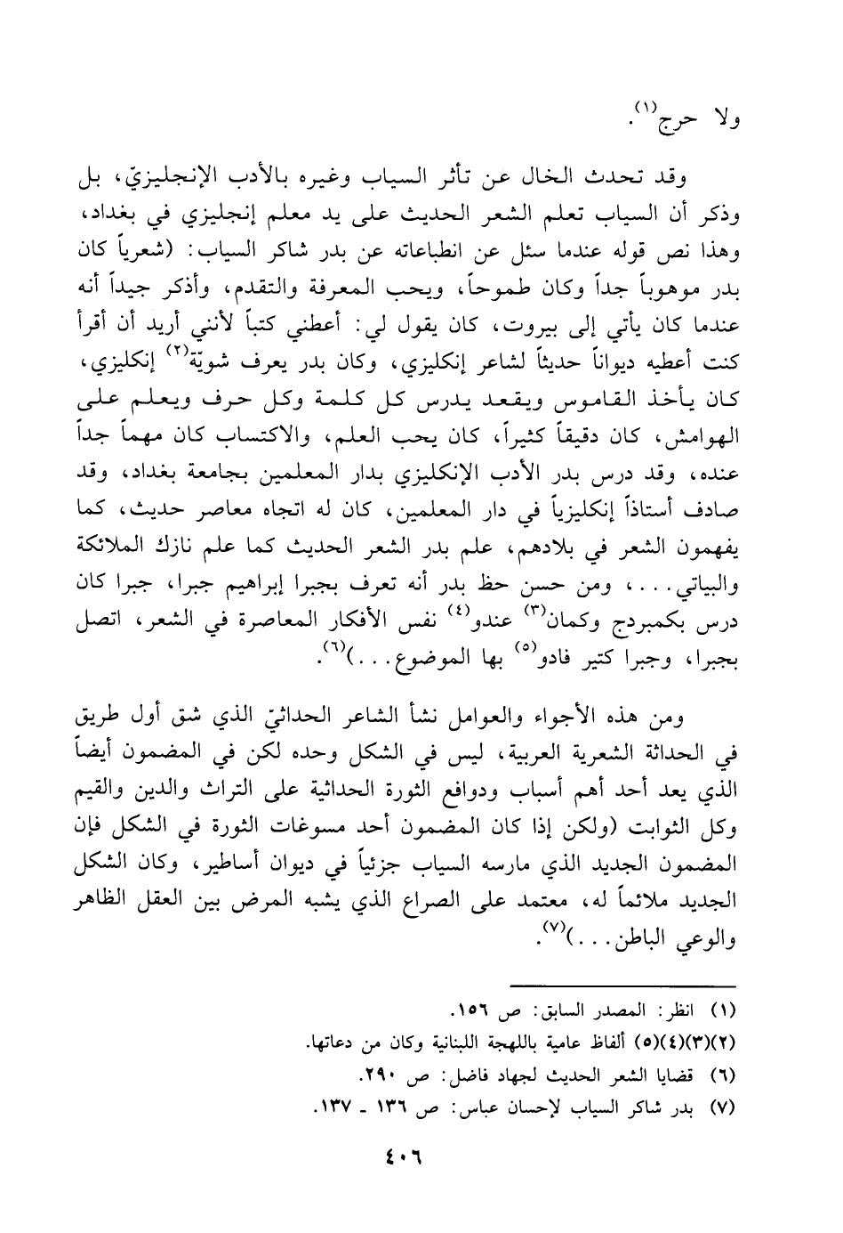 (¬٧) بدر شاكر السياب لإحسان عباس: ص ١٣٦ - ١٣٧.