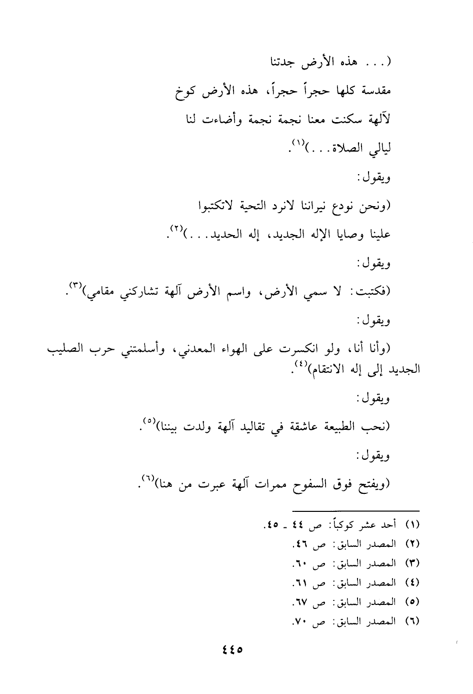 علينا وصايا الإله الجديد، إله الحديد. . .) (¬٢).