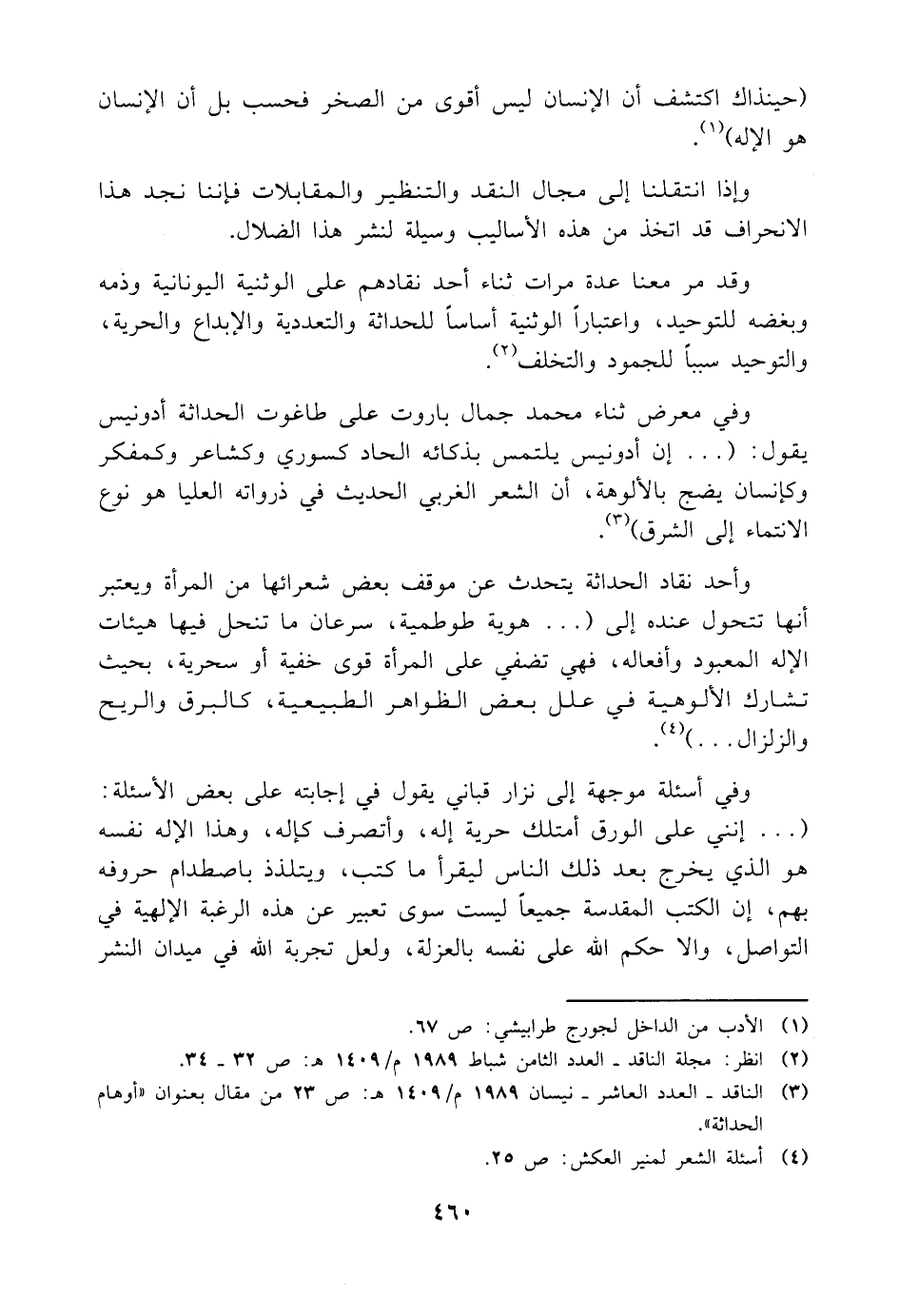 (¬٣) الناقد - العدد العاشر- نيسان ١٩٨٩ م/ ١٤٠٩ هـ: ص ٢٣ من مقال بعنوان "أوهام الحداثة".