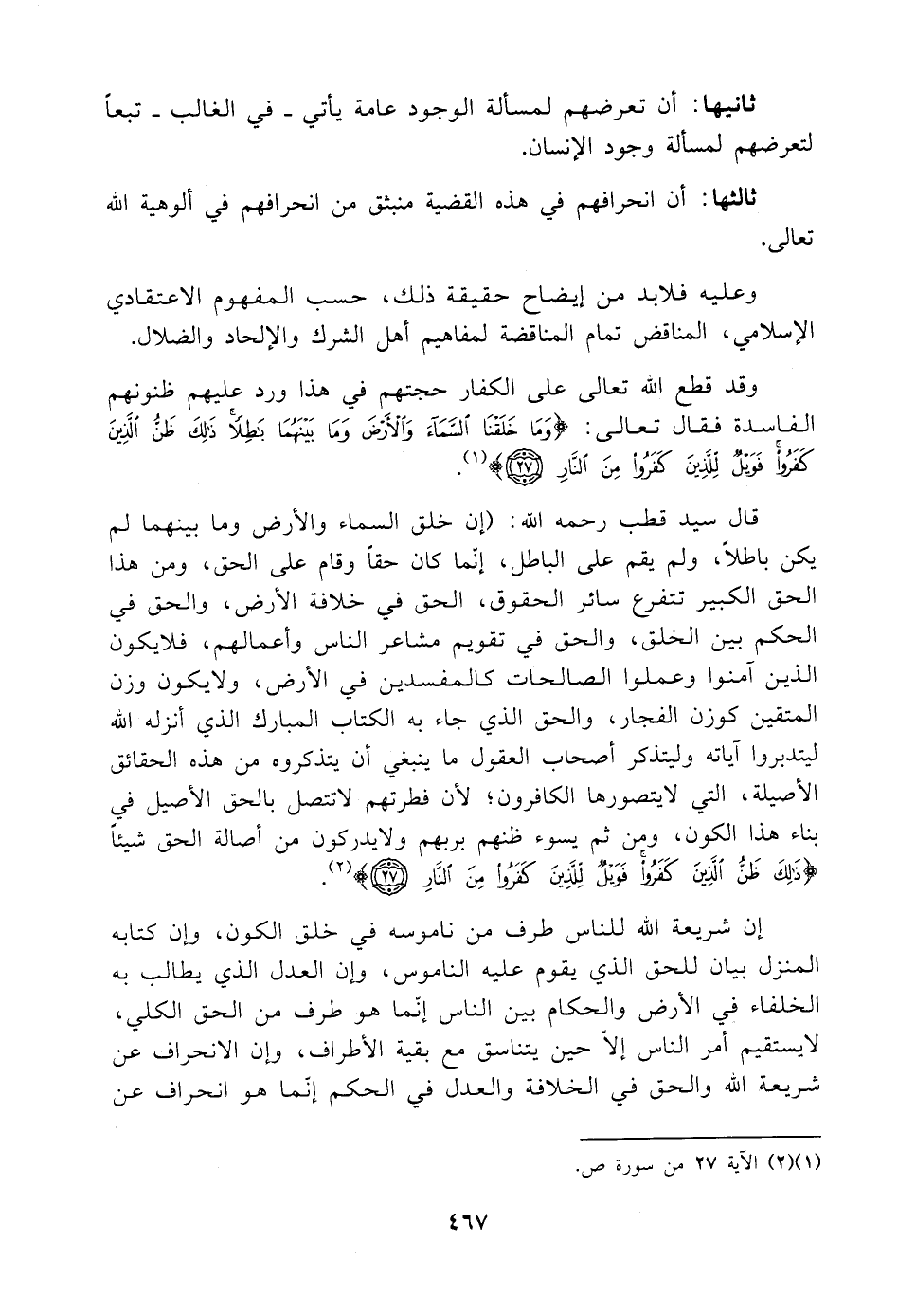 (¬١) و (¬٢) الآية ٢٧ من سورة ص.