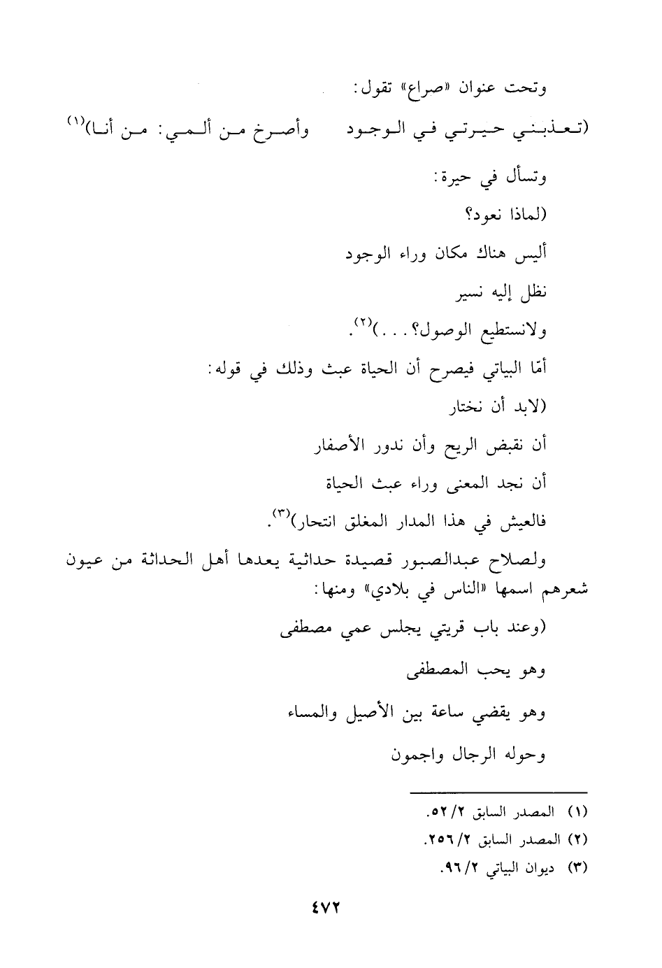 ولصلاح عبد الصبور قصيدة حداثية يعدها أهل الحداثة من عيون شعرهم اسمها "الناس في بلادي" ومنها: