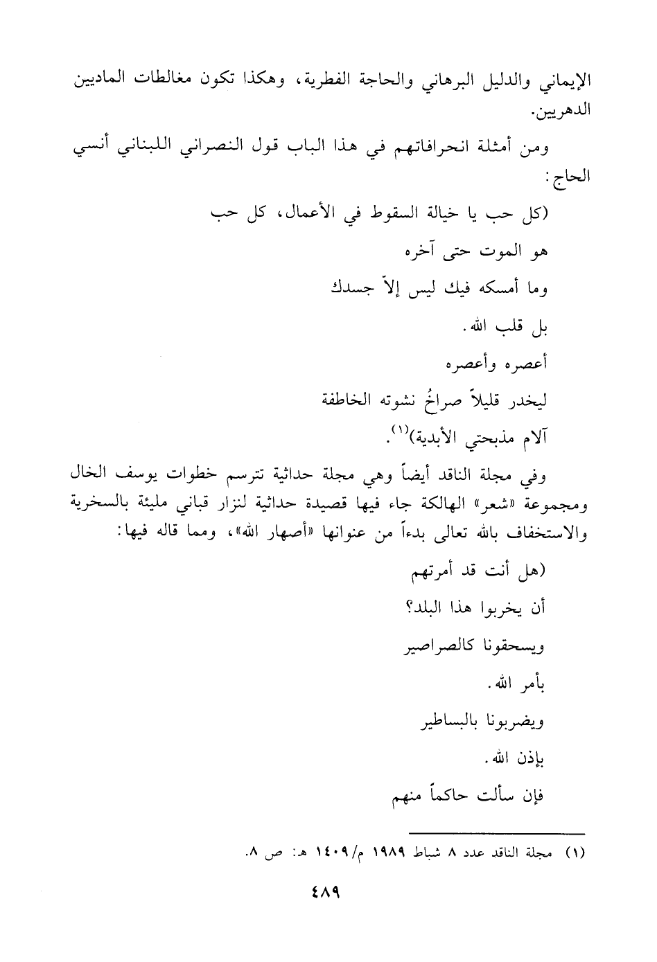 (¬١) مجلة الناقد عدد ٨ شباط ١٩٨٩ م/ ١٤٠٩ هـ: ص ٨.
