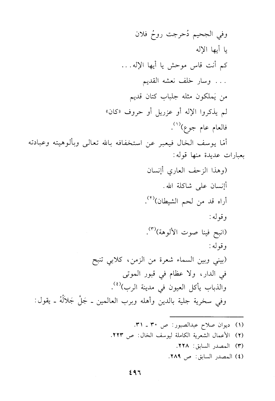 أمّا يوسف الخال فيعبر عن استخفافه باللَّه تعالى وبألوهيته وعبادته بعبارات عديدة منها قوله: