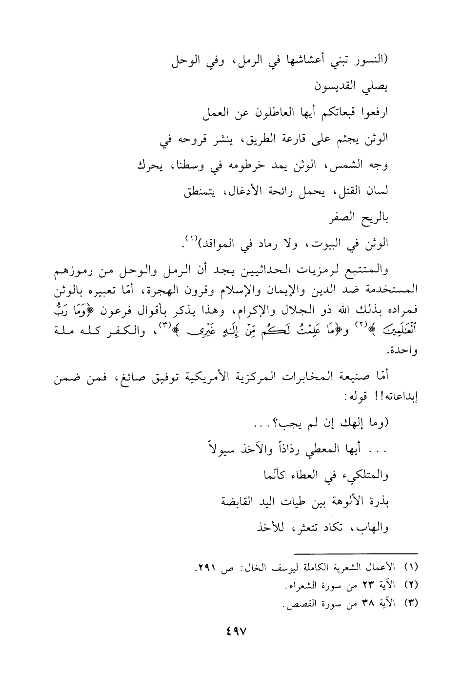 (¬١) الأعمال الشعرية الكاملة ليوسف الخال: ص ٢٩١.