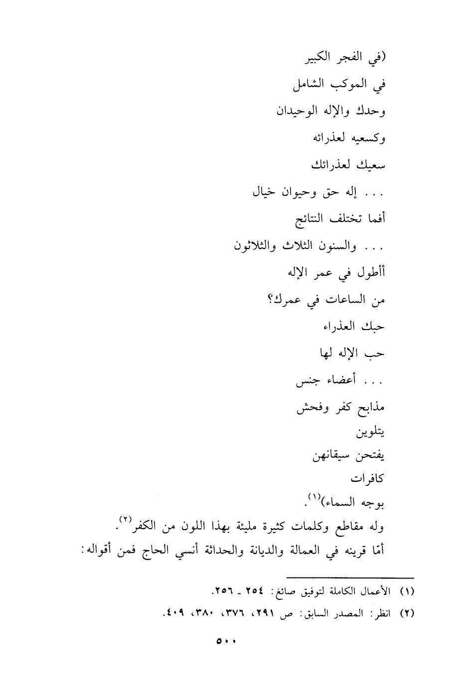 (¬١) الأعمال الكاملة لتوفيق صائغ: ٢٥٤ - ٢٥٦.