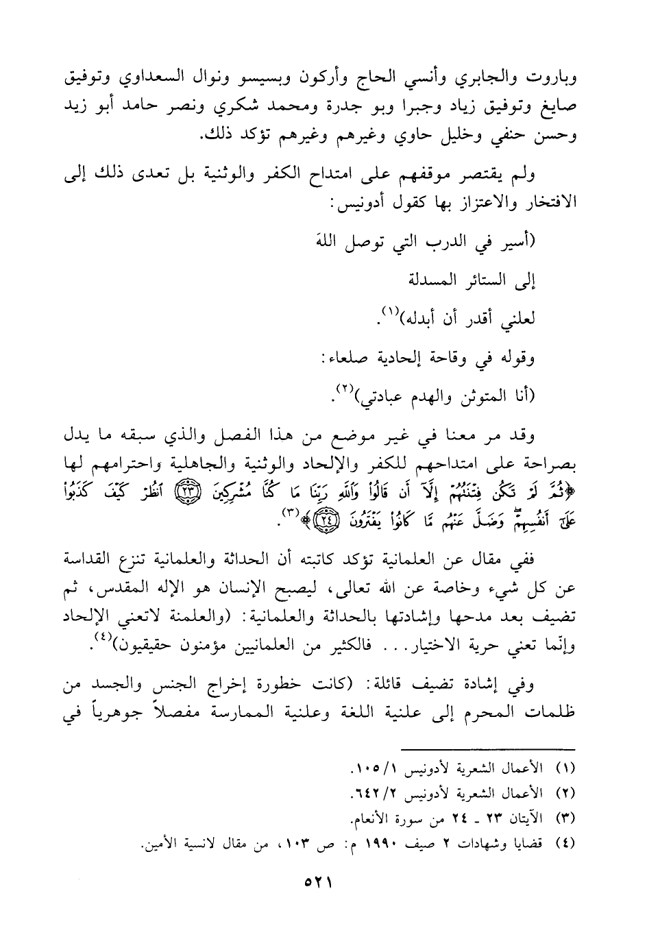 (¬٣) الآيتان ٢٣ - ٢٤ من سورة الأنعام.
