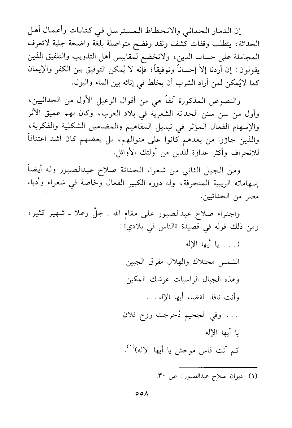 ومن الجيل الثاني من شعراء الحداثة صلاح عبد الصبور وله أيضًا إسهاماته الريبية المنحرفة، وله دوره الكبير الفعال وخاصة في شعراء وأدباء مصر من الحداثيين.