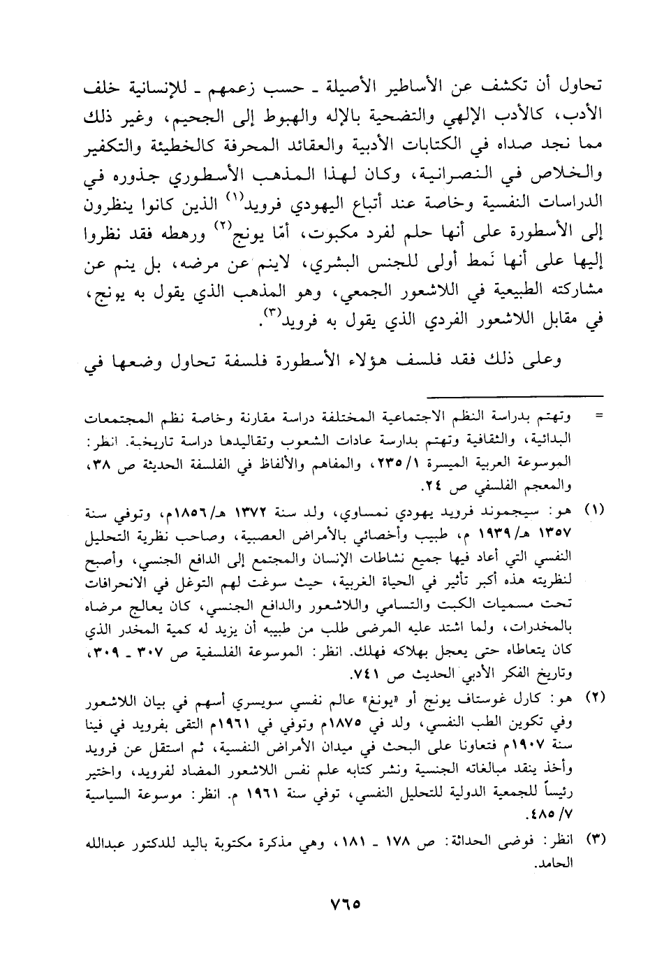 (¬٢) هو: كارل غوستاف يونج أو "يونغ" عالم نفسي سويسري أسهم في بيان اللاشعور وفي تكوين الطب النفسي، ولد في ١٨٧٥ م وتوفي في ١٩٦١ م التقى بفرويد في فينا سنة ١٩٠٧ م فتعاونا على البحث في ميدان الأمراض النفسية، ثم استقل عن فرويد وأخذ ينقد مبالغاته الجنسية ونشر كتابه علم نفس اللاشعور المضاد لفرويد، واختير رئيسًا للجمعية الدولية للتحليل النفسي، توفي سنة ١٩٦١ م. انظر: موسوعة السياسية ٧/ ٤٨٥.