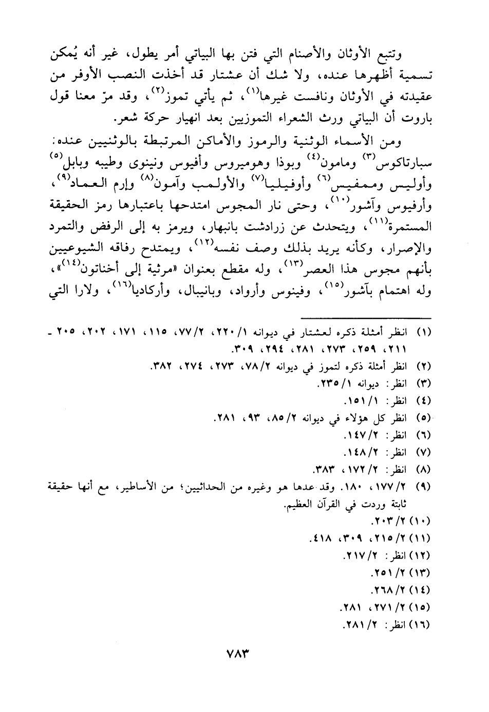 (¬١) انظر أمثلة ذكره لعشتار في ديوانه ١/ ٢٢٠، ٢/ ٧٧، ١١٥، ١٧١، ٢٠٢، ٢٠٥ - ٢١١، ٢٥٩، ٢٧٣، ٢٨١، ٢٩٤، ٣٠٩.