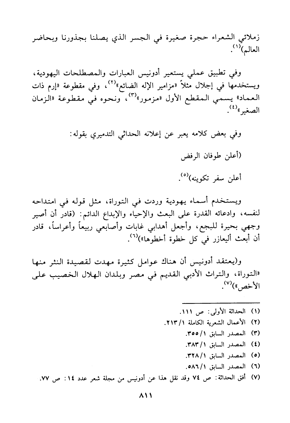 (¬٧) أفق الحداثة: ص ٧٤ وقد نقل هذا عن أدونيس من مجلة شعر عدد ١٤: ص ٧٧.