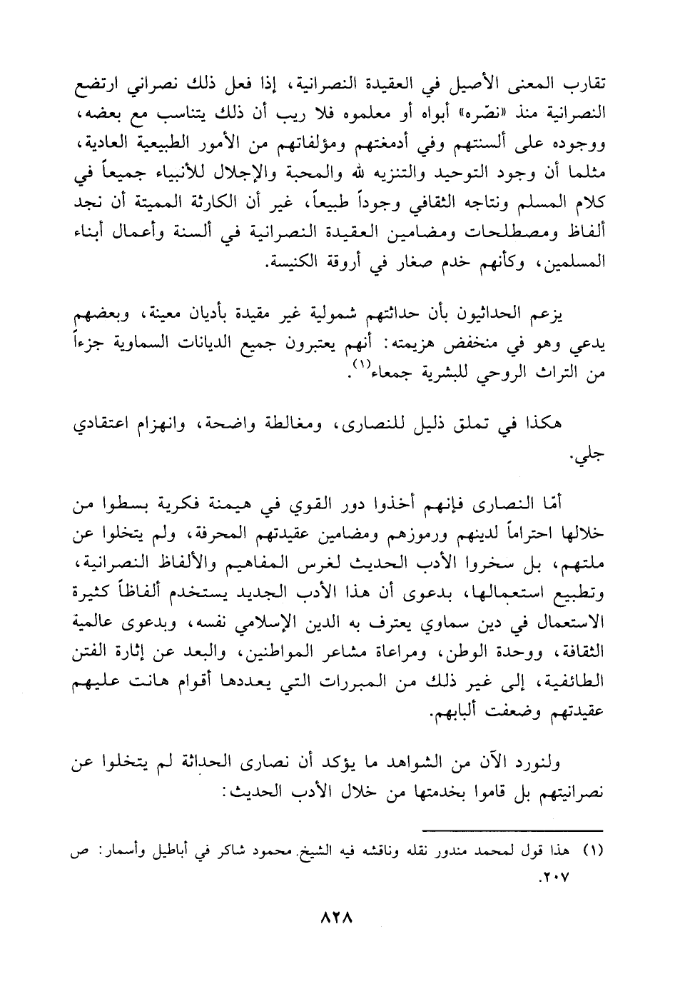 هكذا في تملق ذليل للنصارى، ومغالطة واضحة، وانهزام اعتقادي جلي.