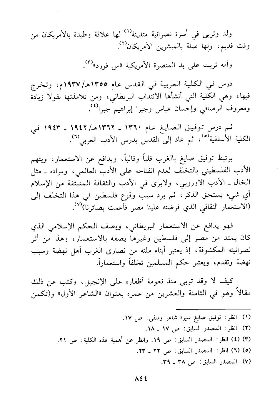 (¬١) انظر: توفيق صايغ سيرة شاعر ومنفى: ص ١٧.