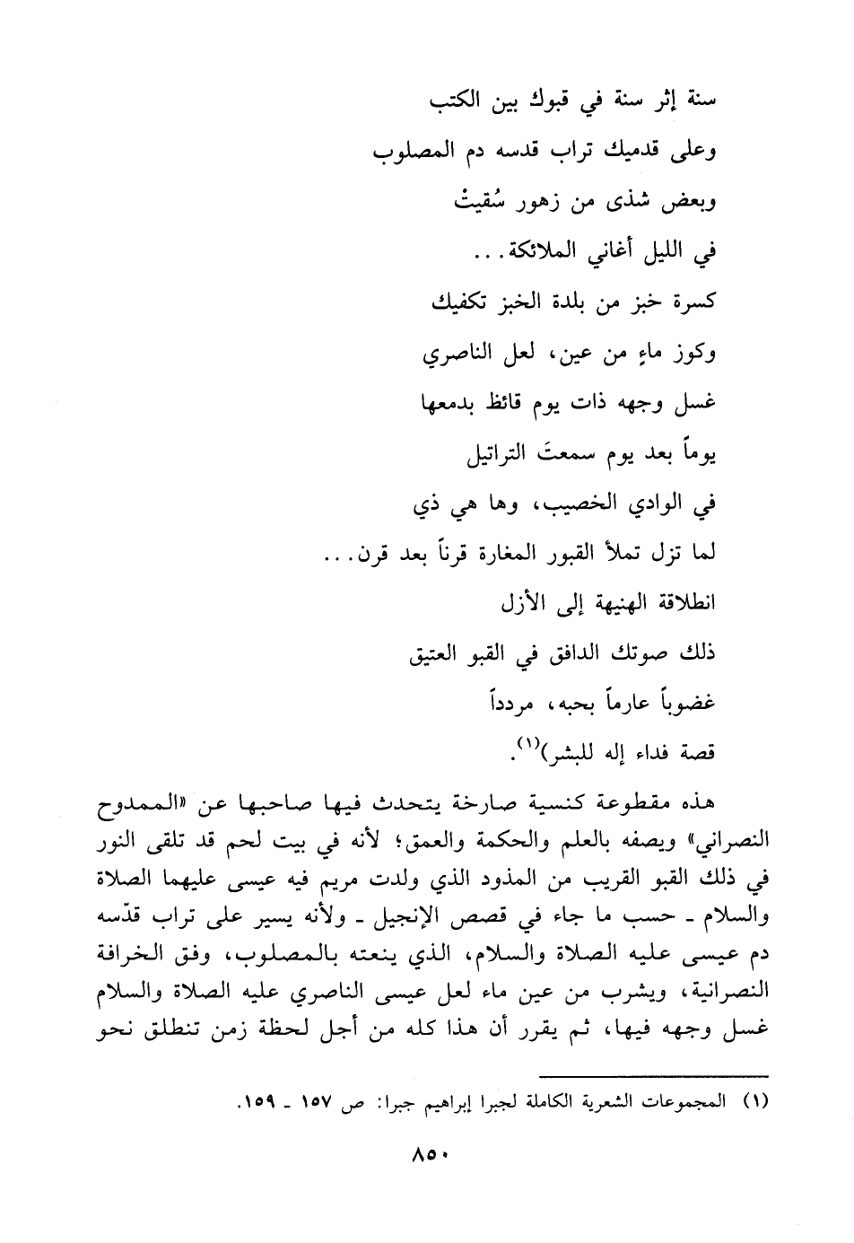 (¬١) المجموعات الشعرية الكاملة لجبرا إبراهيم جبرا: ص ١٥٧ - ١٥٩.