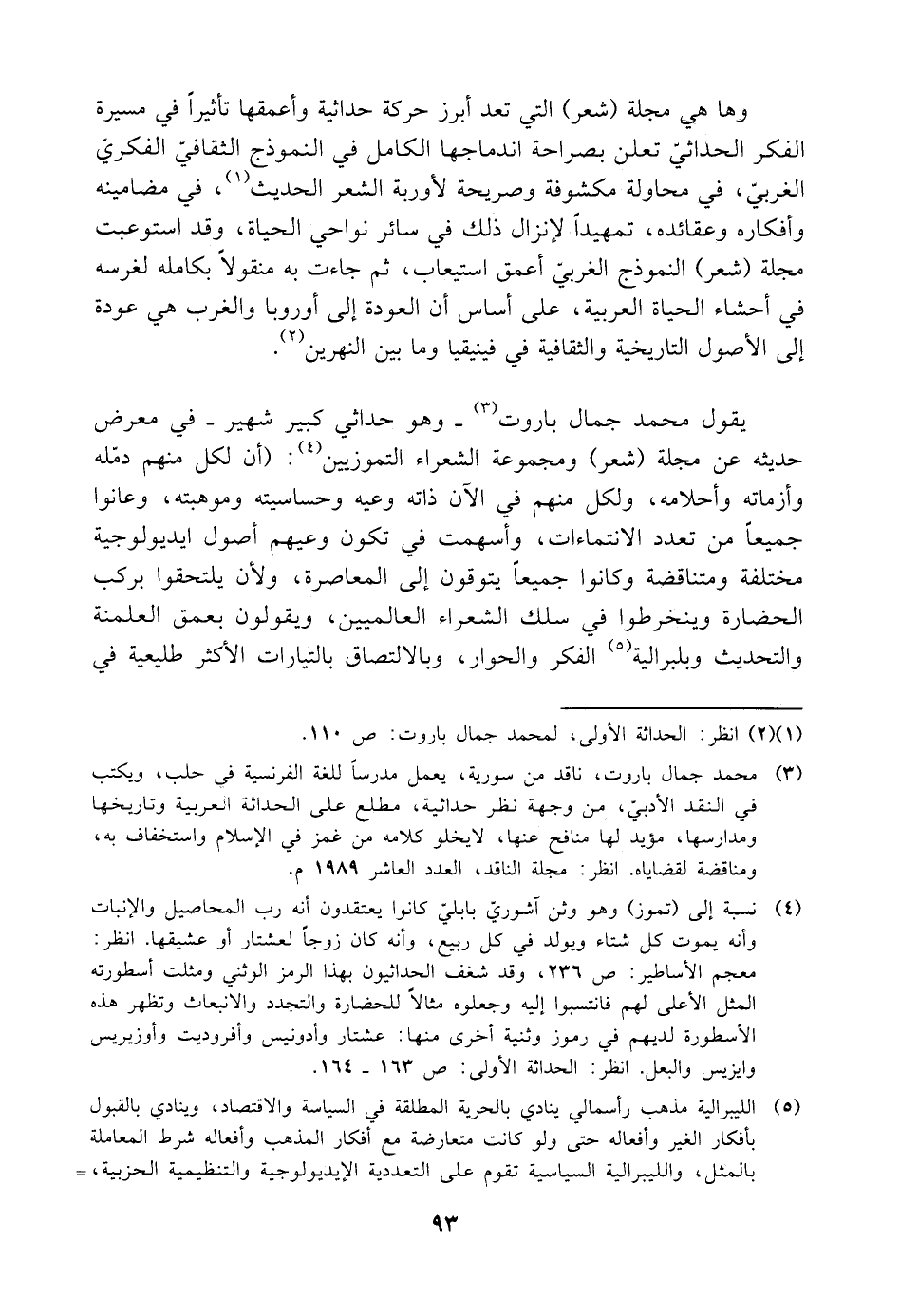 (¬٣) محمد جمال باروت، ناقد من سورية، يعمل مدرسًا للغة الفرنسية فى حلب، ويكتب في النقد الأدبيّ، من وجهة نظر حداثية، مطلع على الحداثه العربية وتاريخها ومدارسها، مؤيد لها منافح عنها، لا يخلو كلامه من غمز في الإسلام واستخفاف به، ومناقضة لقضاياه. انظر: مجلة الناقد، العدد العاشر ١٩٨٩ م.